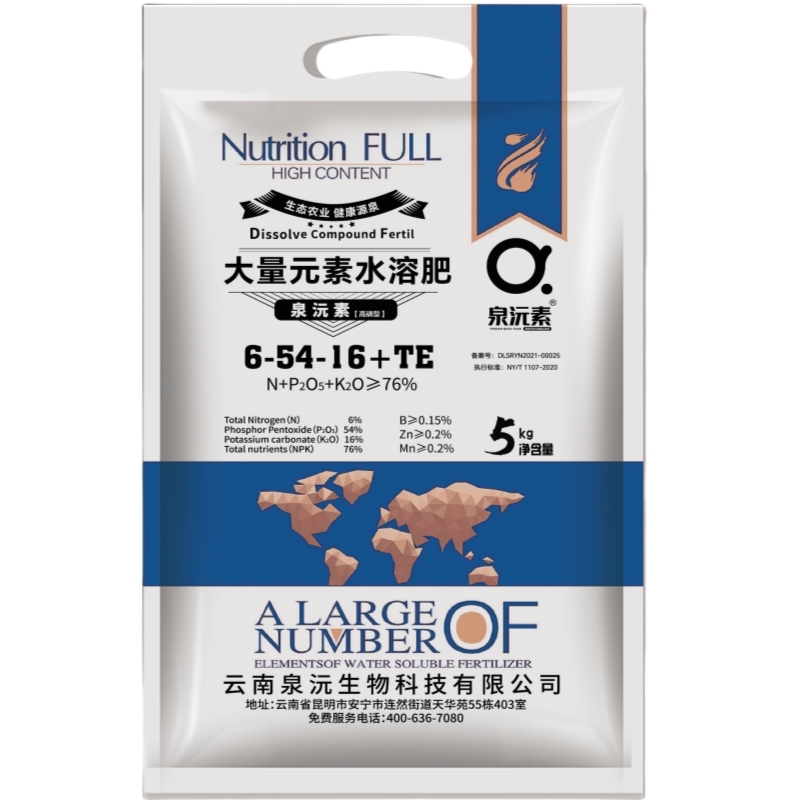 本产品是一种可以完全溶于水的多元素全水溶肥料,它能迅速地溶解于水中,更容易被作物吸收,而且其吸收利用率相对较高,是营养全面用量少见效快的速效肥料。提高作物抗逆能力,促进根系发达。